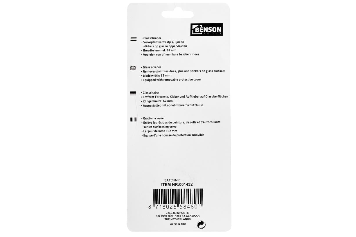 Zorg voor streeploos schone glazen oppervlakken. Koop de Benson Glasschraper 62 mm nu direct op dealzzz.nl.