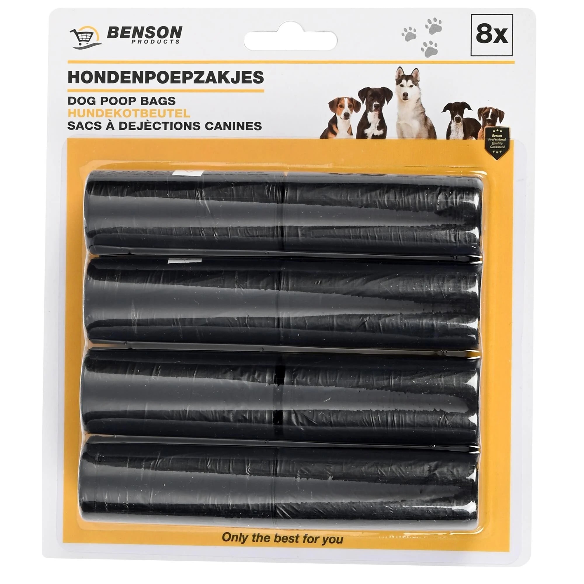 Benson Hondenpoepzakjes – 8 Rollen à 15 Stuks – Zwart – 120 Zakjes Totaal